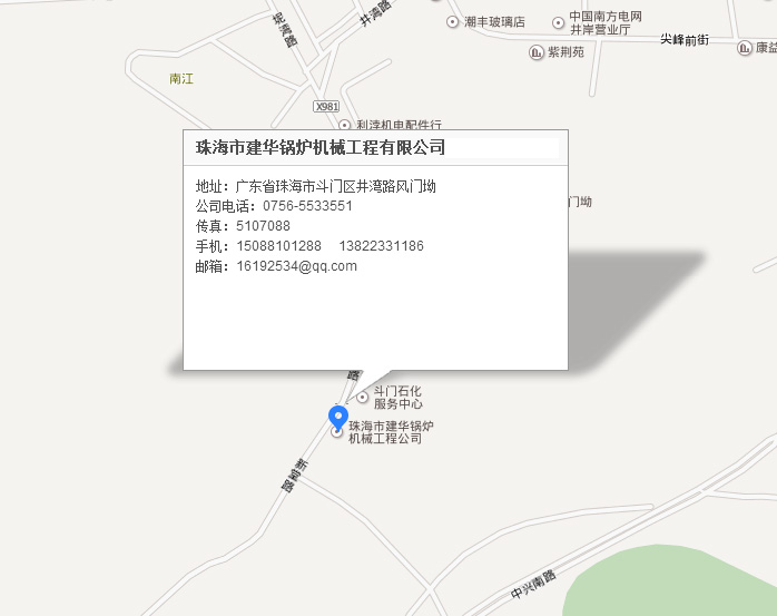 建华锅炉公司地址:广东省珠海市斗门区井湾路风门坳柏克莱能源公司地址:珠海市井岸镇工业大道北368号